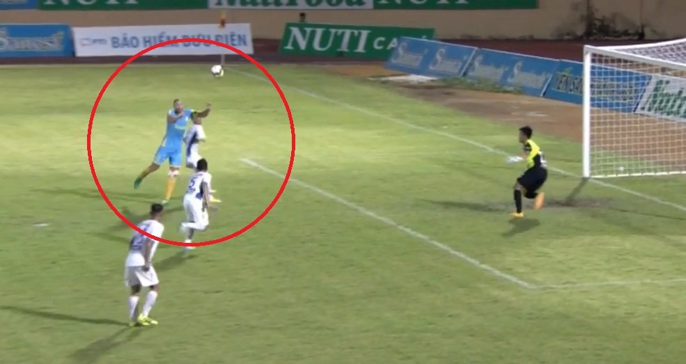 Trong tình huống tấn công ở phút 87 của trận đấu, trọng tài Nguyễn Văn Kiên bất ngờ cho Sanna Khánh Hòa BVN hưởng phạt đền. Vị vua áo đen xác định hậu vệ Hoàng Anh Gia Lai phạm lỗi với Zarour Chaher trong vòng cấm.