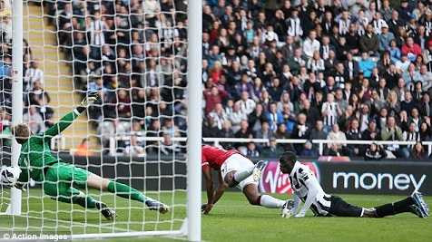 (VTC News) - Phút 50 của trận đấu trên sân St.James' Park, Papiss Cisse có cú đánh đầu cực mạnh khiến De Gea phải bay hết người cản phá. Những góc quay sau đó cũng không thể xác định bóng đã hoàn toàn qua vạch vôi hay chưa, nhưng trọng tài Howard Webb đã quyết định không công nhận bàn thắng cho Newcastle United.
