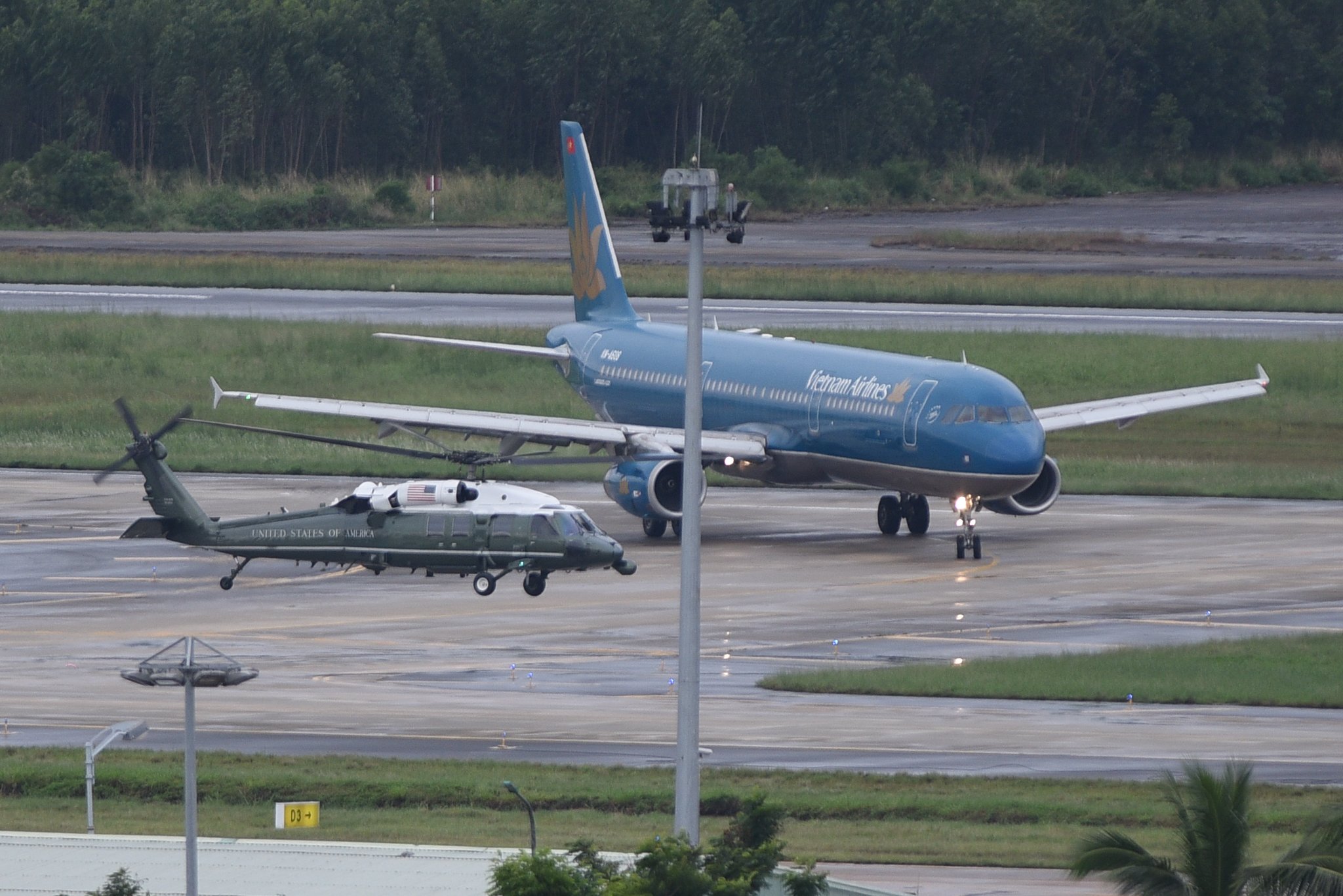Trực thăng Marine One của Mỹ bay vòng quanh sân bay Đà Nẵng.