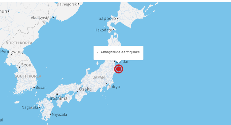 Trong khi đó, Cơ quan Địa chất Mỹ ban đầu báo cáo trận động đất ở Nhật có cường độ 7,3 nhưng sau đó hạ xuống còn 6,9 độ richter. Tâm chấn được cho là nằm ngoài bờ biển khu vực Fukushima có độ sâu khoảng 10 km.