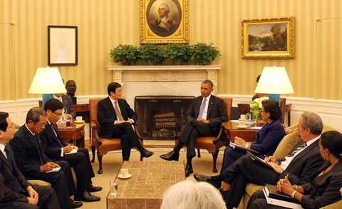 (VTC News)- Chủ tịch nước Trương Tấn Sang và Tổng thống Obama quyết định xác lập quan hệ Đối tác toàn diện Việt Nam – Hoa Kỳ nhằm xây dựng một khuôn khổ tổng thể để thúc đẩy quan hệ.
