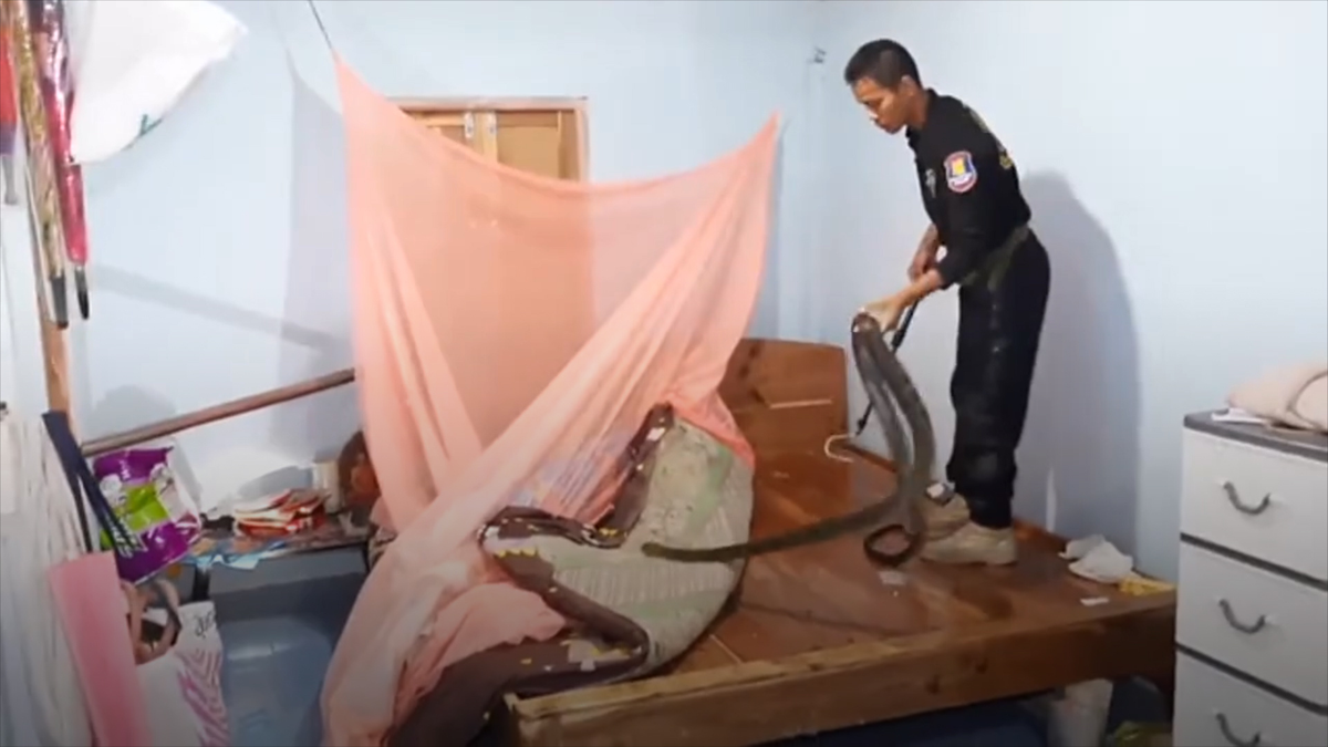 Video: Vây bắt rắn hổ mang chúa dài 2m dưới gầm giường nhà dân ở Thái Lan