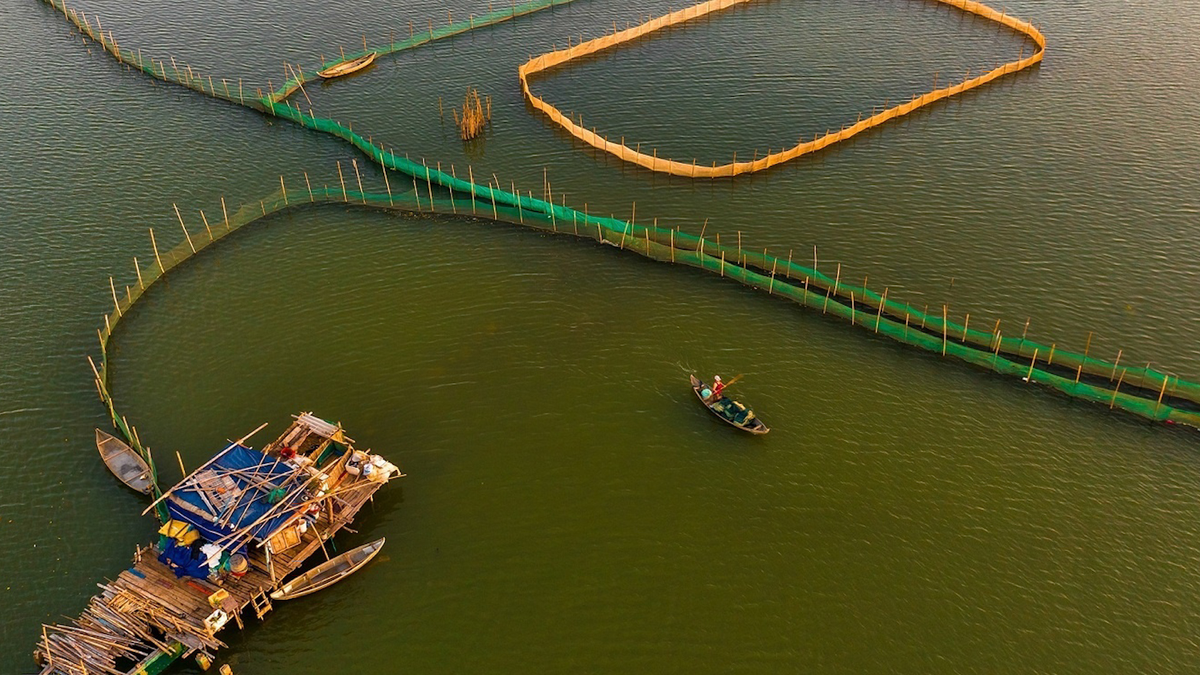 Anh Nguyễn Tiến Trình (TP Quy Nhơn) miêu tả vẻ đẹp cuốn hút của đầm Thị Nại qua bộ ảnh "Khung cảnh đồng quê Bình Định nhìn từ trên cao".
