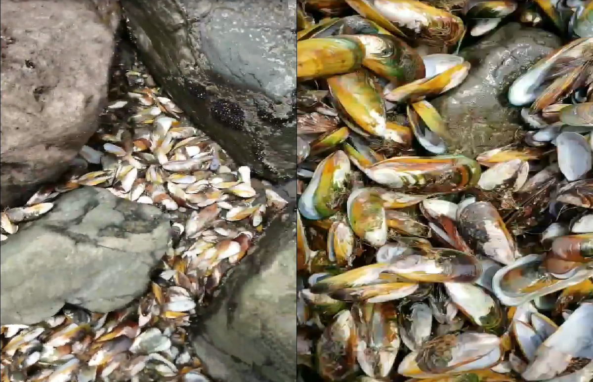Video ghi lại hình ảnh hàng trăm nghìn con vẹm chết nóng do nhiệt độ nước biển tăng tại New Zealand.