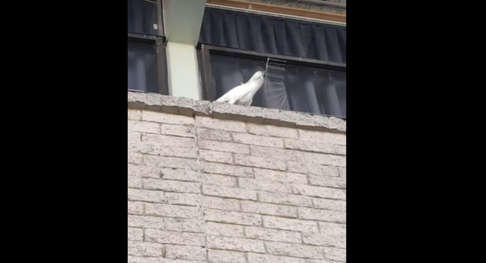 Đoạn video đăng tải trên facebook ghi lại cảnh con vẹt gỡ từng dải nhỏ của hàng rào gai ở trung tâm mua sắm Katoomba trước khi ném chúng xuống đất.
