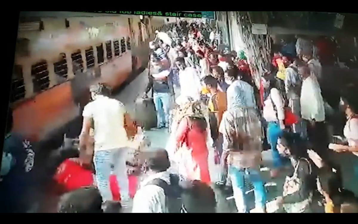 Thấy người phụ nữ bất ngờ bị trượt chân và ngã vào đoàn tàu đang rời ga, một sĩ quan cảnh sát Ấn Độ đã phản ứng cực nhanh giải cứu nạn nhân.