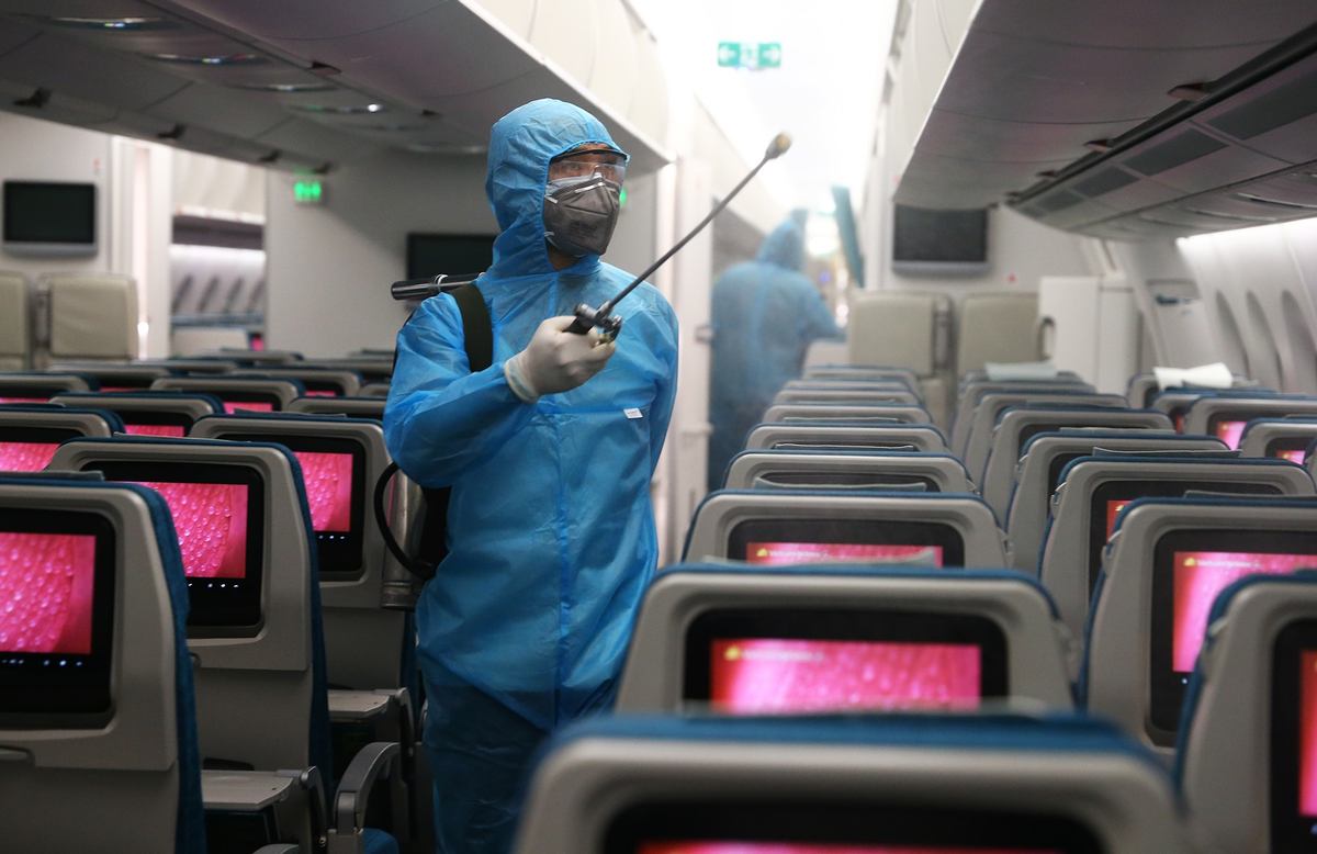 Vietnam Airlines thực hiện phun khử trùng và lau chùi vệ sinh trang thiết bị toàn bộ đội tàu bay ngay sau khi hạ cánh.
