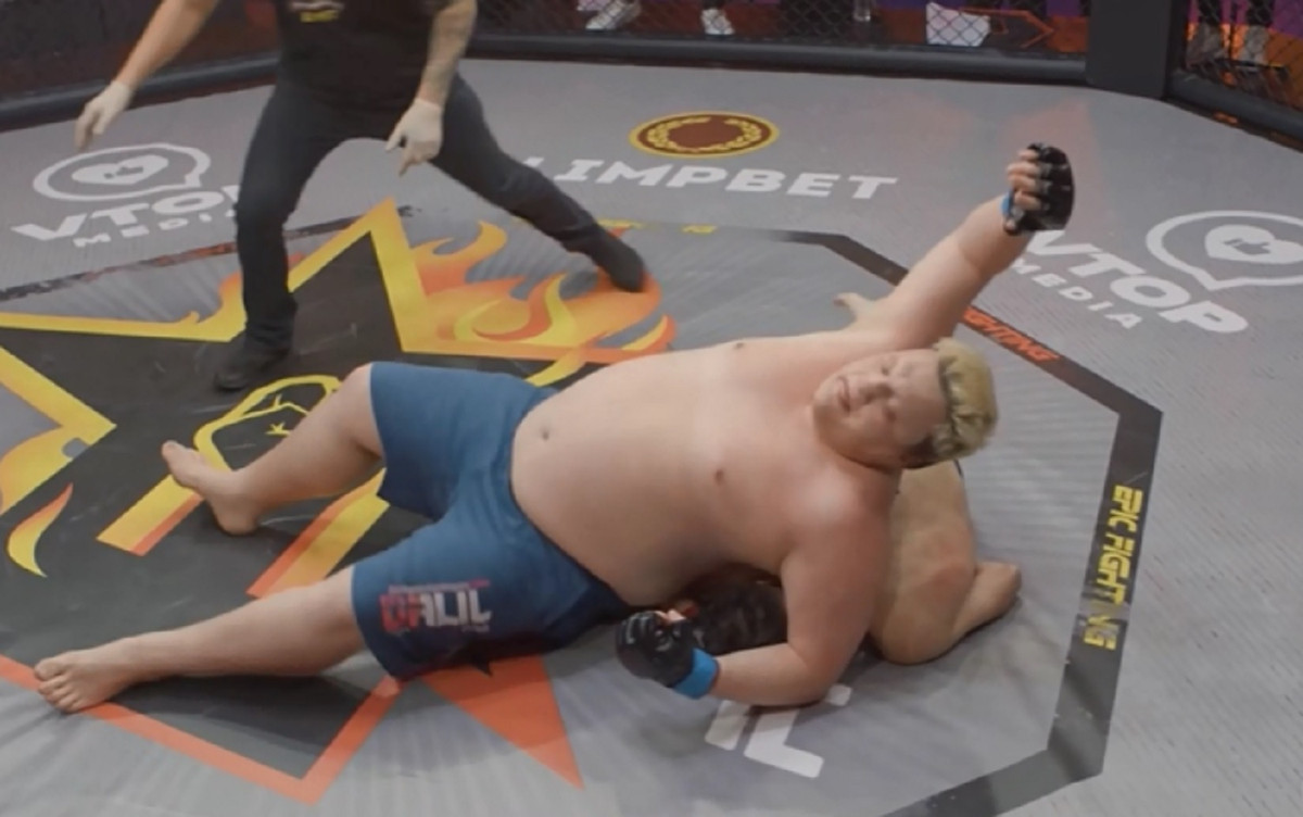 Video: Võ sĩ tí hon nằm bẹp dưới đối thủ bụng bia nặng gấp 3 lần