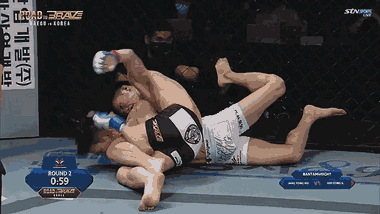 Võ sĩ Kim Dong Il tung loạt 35 cú đấm và đòn chỏ khiến đối thủ phải nhận trận thua knock-out tại sự kiện "Road To Brave" Hàn Quốc.
