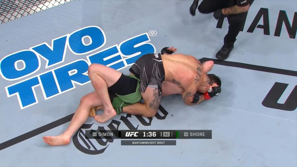 Ở cuộc chạm trán với Jack Shore tại sự kiện UFC on ABC 3, võ sĩ Ricky Simon tung loạt đòn cực hiểm, đặc biệt là chiêu siết cổ khiến đối thủ xin đầu hàng.
