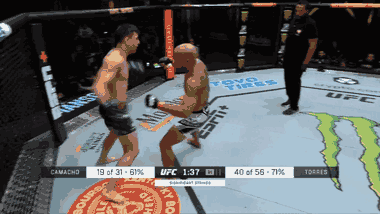 Tại sự kiện UFC Vegas 54 (Mỹ) võ sĩ Manuel Torres tung cú đấm móc cực mạnh khiến Frank Camacho ngã ngửa xuống sàn và mất khả năng chiến đấu.