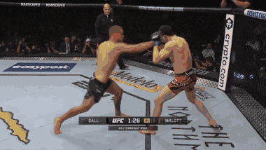 Tại sự kiện UFC 273, võ sĩ Mike Malott tung cú đấm móc cực mạnh khiến Mickey Gall ngã gục xuống sàn đấu.