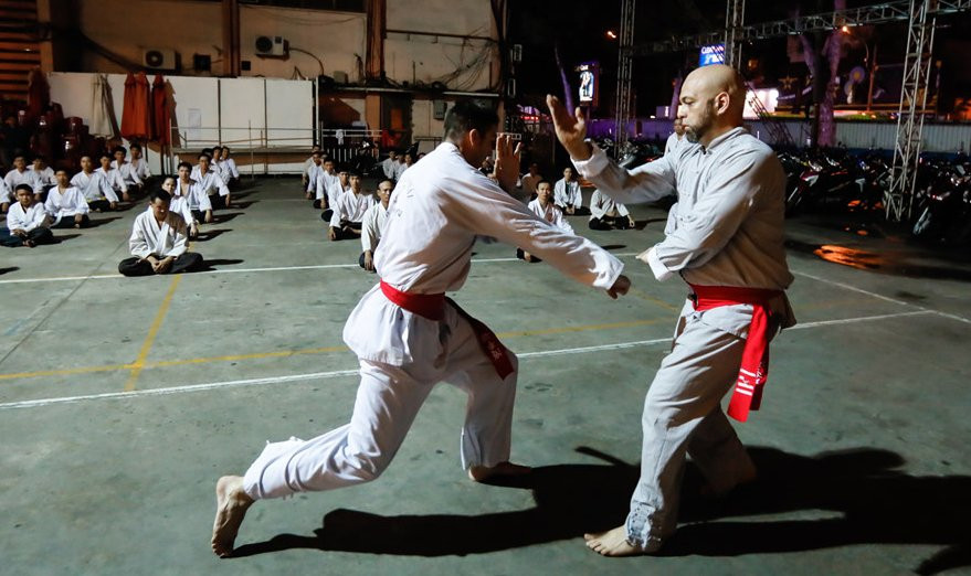 Tại đây, võ sư Pierre Francois Flores đã có màn biểu diễn cùng môn đệ trước các môn sinh của hệ phái Karate của võ sư Cù Mai Công.
