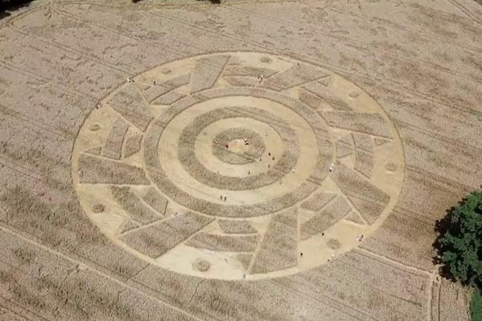 Vòng tròn bí ẩn với đường kính 100 m mới đây xuất hiện trên cánh đồng ngũ cốc ở Bavaria, Đức.