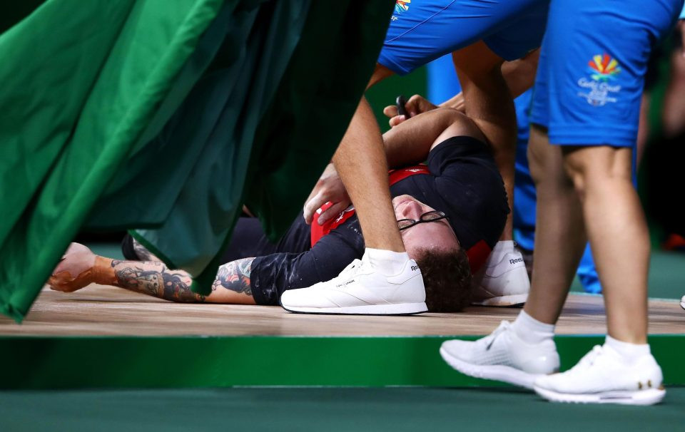 Khi vừa bắt đầu bài thi, đô cử Joshua Parry (Xứ Wales) đột nhiên đánh rơi tạ và có biểu hiện mất tỉnh táo. Sau một thoáng lảo đảo, VĐV 27 tuổi ngã quỵ và bất tỉnh. Nhân viên y tế lập tức sơ cứu nạn nhân trong khi ban tổ chức lấy rèm che để khán giả không phải sợ hãi khi chứng kiến cảnh tượng trên sàn thi đấu.