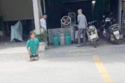 Hình ảnh bé gái quỳ trước cửa hàng phở ở xã Thái Học, huyện Bình Giang, Hải Dương lan truyền trên mạng khiến nhiều người bức xúc.
