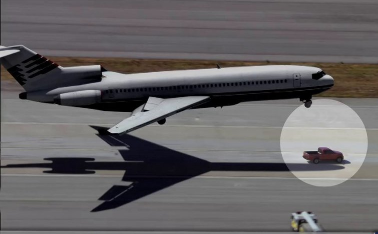 Để làm được điều đó, nhân viên sân bay này đã phải điều chỉnh cho chiếc xe bán tải của anh di chuyển cùng tốc độ với máy bay khi nó chuẩn bị hạ cánh.