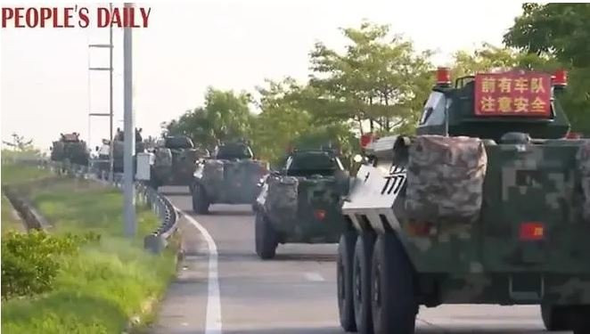 Trong một video đăng tải trên Twitter của tờ Nhân dân Nhật báo cho biết đoàn xe bọc thép đang đi đến Thâm Quyến để chuẩn bị một cuộc diễn tập.