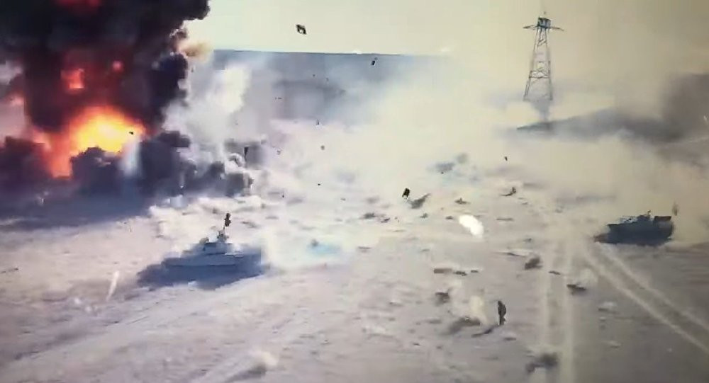 Trong video được máy bay không người lái ghi lại, chiếc xe tăng cố gắng chặn xe bom của lực lượng khủng bố, đầu tiên bằng súng máy và sau đó cố gắng quay tháp pháo, hướng nòng pháo vào phía chiếc xe.