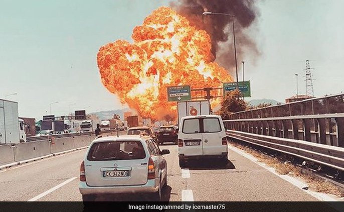 Người lái xe được cho là đã không nhấn kịp chân phanh. Cú va chạm mạnh khiến chiếc xe bồn nổ tung, tạo ra một quả cầu lửa khổng lồ.