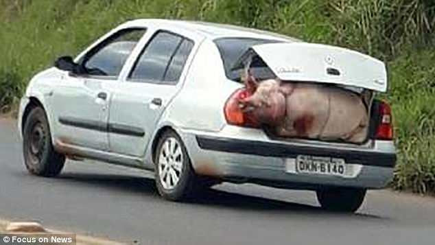 Một số con được trực tiếp đưa và trong xe trong khi nhiều con khác bị nhét vào cốp sau. Ngay cả khi không đóng được cốp, họ vẫn điềm nhiên rời đi cùng những con lợn béo mẫm vẫn chưa kịp "hoàn hồn" sau tai nạn lật xe.