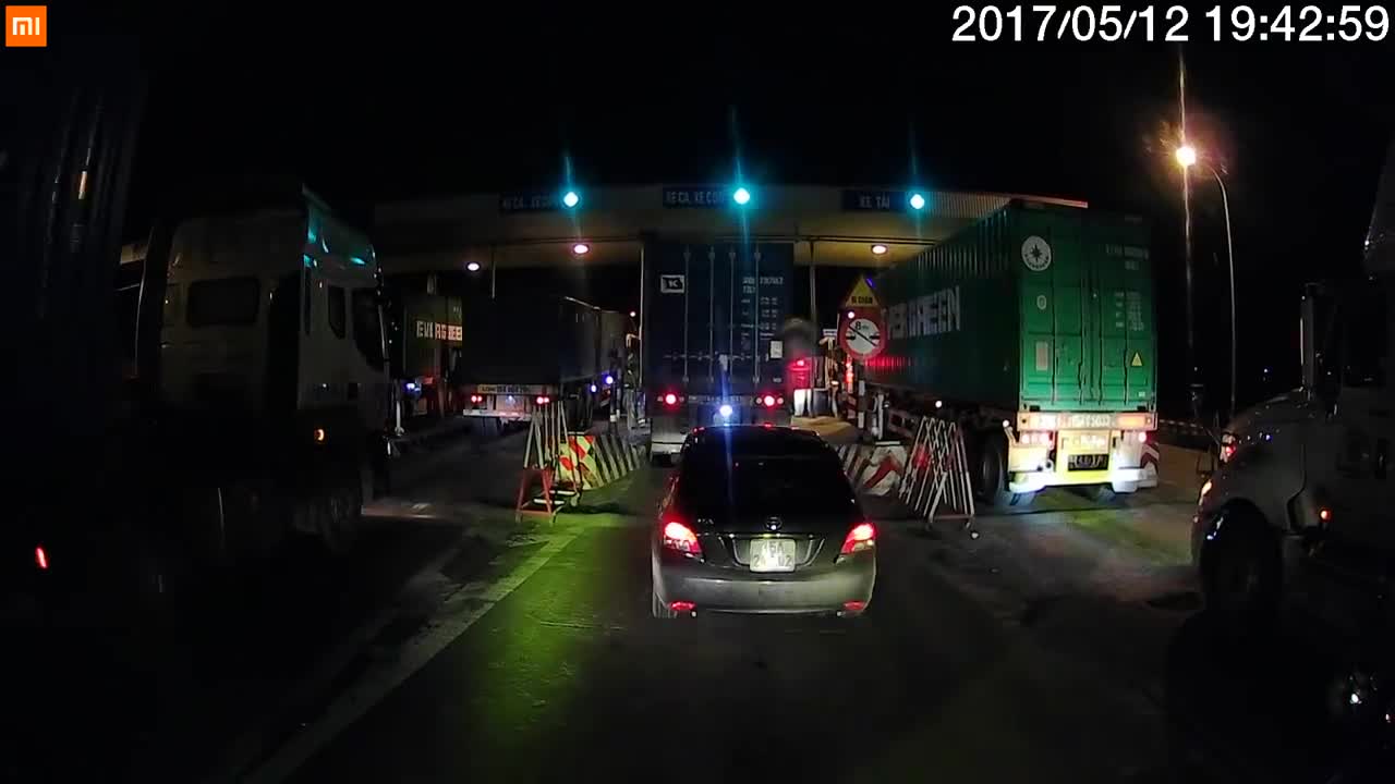 Sự việc được camera hành trình ghi lại tại trạm thu phí BOT trên quốc lộ 5 vào tối ngày 12/5 cho thấy hình ảnh một chiếc xe ôtô con cố tình bám sát đuôi xe container trốn vé trót lọt.