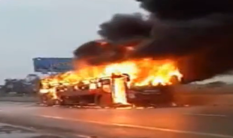 Vụ cháy xe khách nghiêm trọng xảy ra vào lúc 17h30 ngày 13/4 trên quốc lộ 1A, đoạn qua địa phận xóm 22, xã Nghi Trung, huyện Nghi Lộc (Nghệ An).
