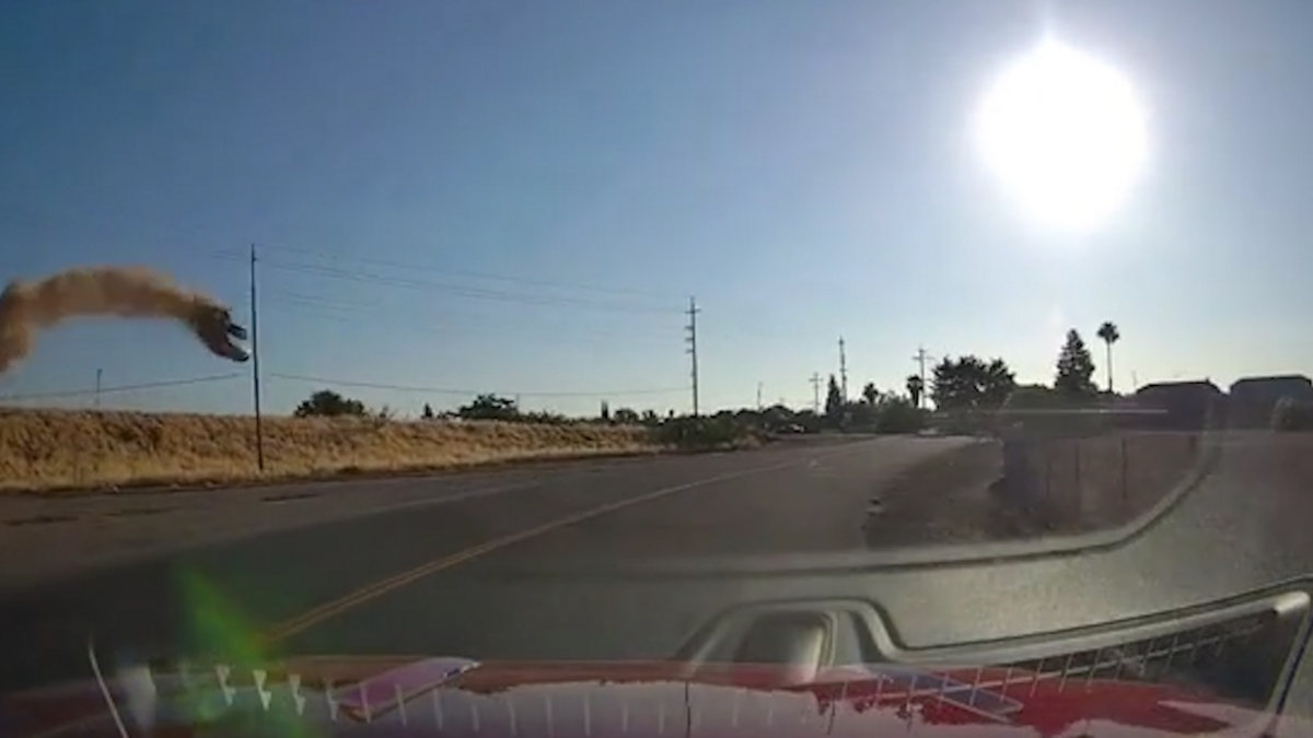 Sau khi bay lên cao khoảng 20m, xe hơi cắm đầu xuống đất, lộn một vòng trên một cao tốc tại California, Mỹ.