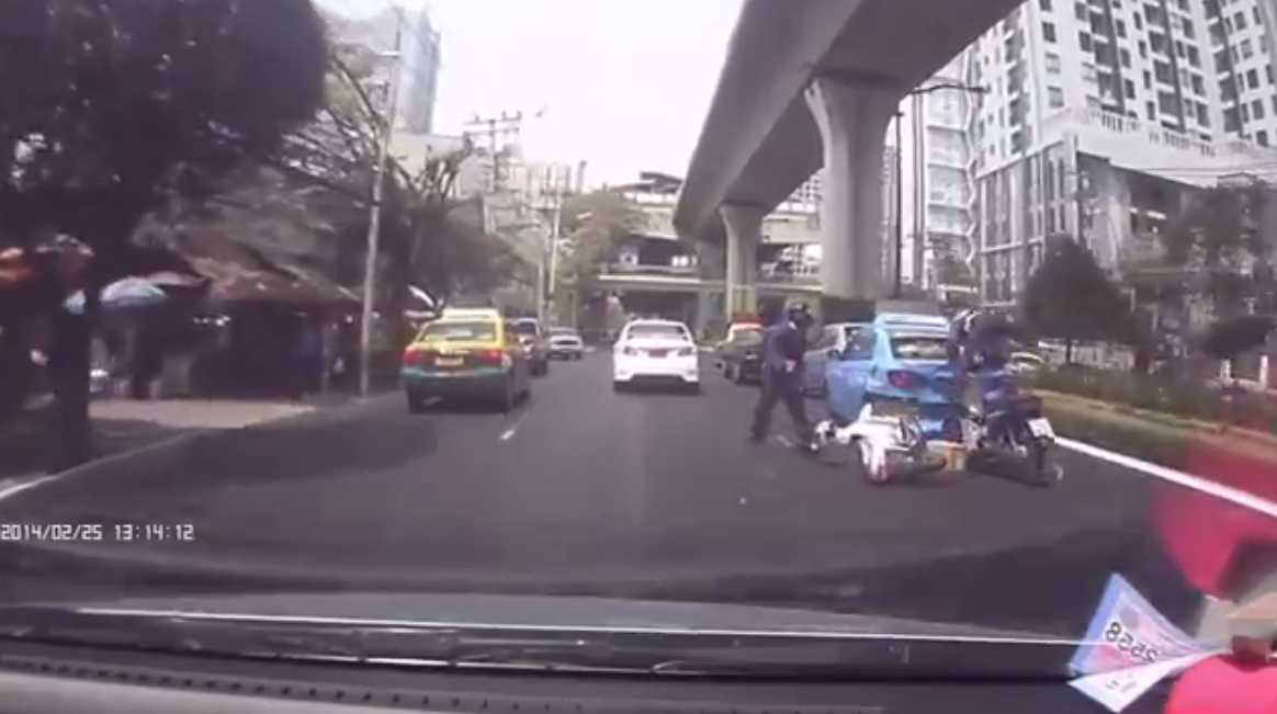 (VTC News) - Dù chạy đúng làn đường nhưng do mất kiểm soát tốc độ, 2 người đi mô tô vẫn liên tiếp tông vào đuôi chiếc xe ô tô bất ngờ dừng lại khẩn cấp.