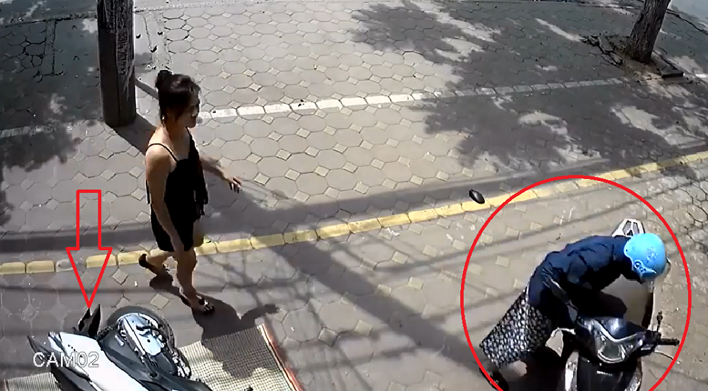 Ít phút sau, người phụ nữ trong trang phục tránh nắng kín mít tiến đến, cùng lúc đó, một người phụ nữ khác từ trong nhà chạy ra. Hai người hỗ trợ nhau dựng 2 chiếc xe bị đổ dậy rồi người phụ nữ trùm đồ kín mít lái chiếc xe Lead màu xanh rời khỏi hiện trường.