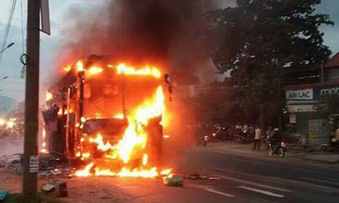 Thông tin từ người dân chứng kiến vụ việc, vào thời điểm trên, tài xế Trần Ngọc Hải (ngụ Bình Định) điều khiển xe khách giường nằm mang BKS: 77B-004.05, chở 30 người từ Bình Định vào Sài Gòn. Khi đến địa điểm trên, tài xế bất ngờ thấy lửa bốc lên từ thân xe.