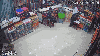 Người phụ nữ mang thai và những người bạn bỏ chạy khi một xe máy mất kiểm soát lao thẳng vào cửa hàng may mặc ở Khammam, Ấn Độ.