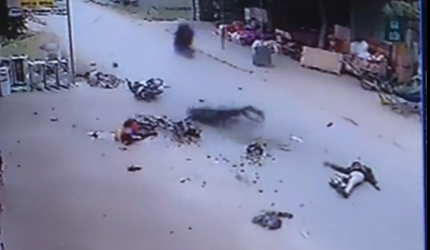 Chỉ trong tích tắc, sau tai nạn khủng khiếp, 2 chiếc xe máy vỡ vụn thành nhiều mảnh, tung tóe trên đường, các nạn nhân bị văng xa, bất tỉnh tại chỗ.