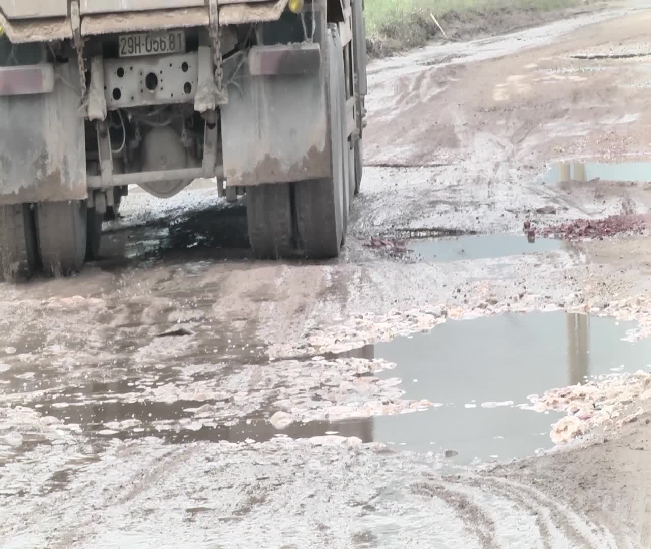 Nhiều xe quá tải chở vật liệu xây dựng cày nát mặt đê sông Hồng tại Hà Nội, khiến cuộc sống của người dân bị ảnh hưởng.