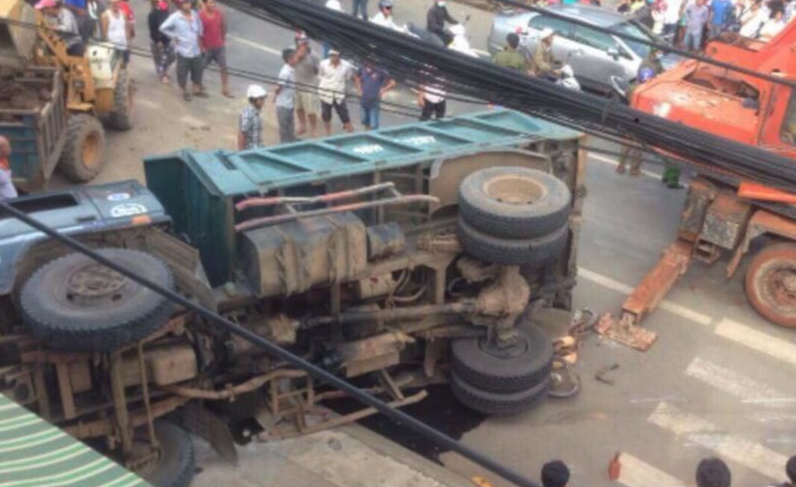 Video: Xe tải chở 6 tấn đất đá phóng nhanh, đổ lật đè chết người bán vé số