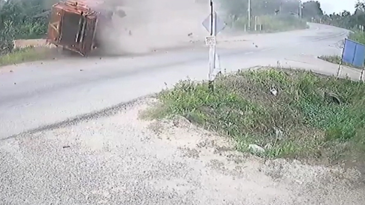 Video: Xe tải chở rác lộn nhiều vòng, người đi xe máy thoát chết thần kỳ