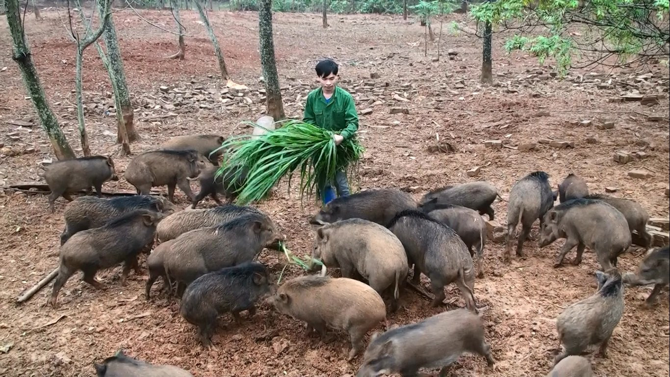 Sau một thời gian huấn luyện cho đàn lợn rừng của mình, anh Nguyễn Văn Tùng, 23 tuổi (ở xã Đông Xuân, huyện Quốc Oai, Hà Nội) chỉ cần bấm còi xe máy là đã có thể tập hợp được đàn.