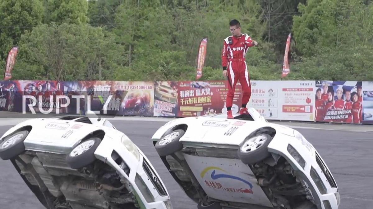 Các diễn viên đóng thế đã biểu diễn những động tác nguy hiểm như kỹ năng lái ô tô bằng 2 bánh, drift theo hình số 8 tại tỉnh Tứ Xuyên, Trung Quốc.