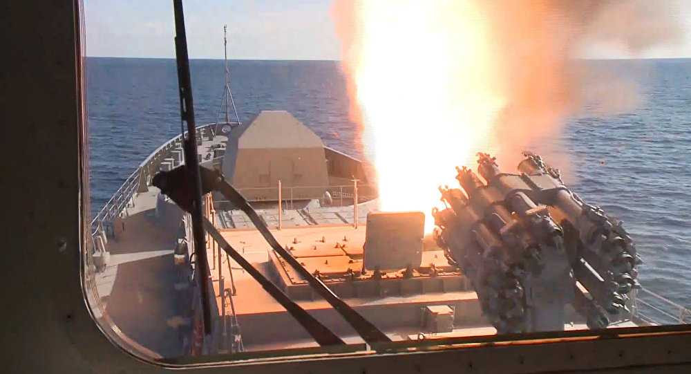 Theo đó, chiến hạm Đô đốc Grigorovich thực hiện các vụ phóng tên lửa hành trình Kalibr vào các mục tiêu được xác định từ trước.