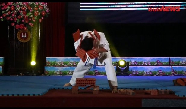 Tiết mục biểu diễn dùng đầu đập nát gạch trong chương trình chào đón tân sinh viên khóa D44, Học viện Cảnh sát Nhân dân diễn ra vào tối 16/10 khiến nhiều người phấn khích.