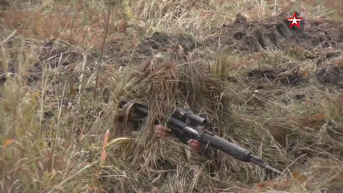 Các tay súng bắn tỉa của Quân khu phía Đông (Nga) diễn tập ngụy với 2 bộ đồ "Yêu tinh" và "Kikimora" trong buổi diễn tập.