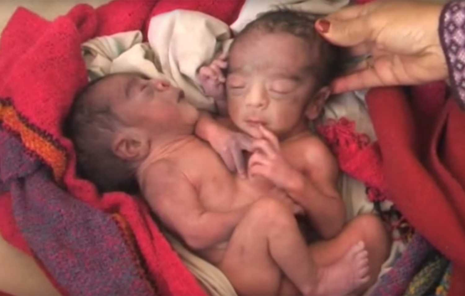Cặp song sinh dính liền ngực và bụng chào đời tại bang Uttar Pradesh (Ấn Độ) với 4 tay, 2 chân và cùng chung nhiều bộ phận quan trọng trên cơ thể.