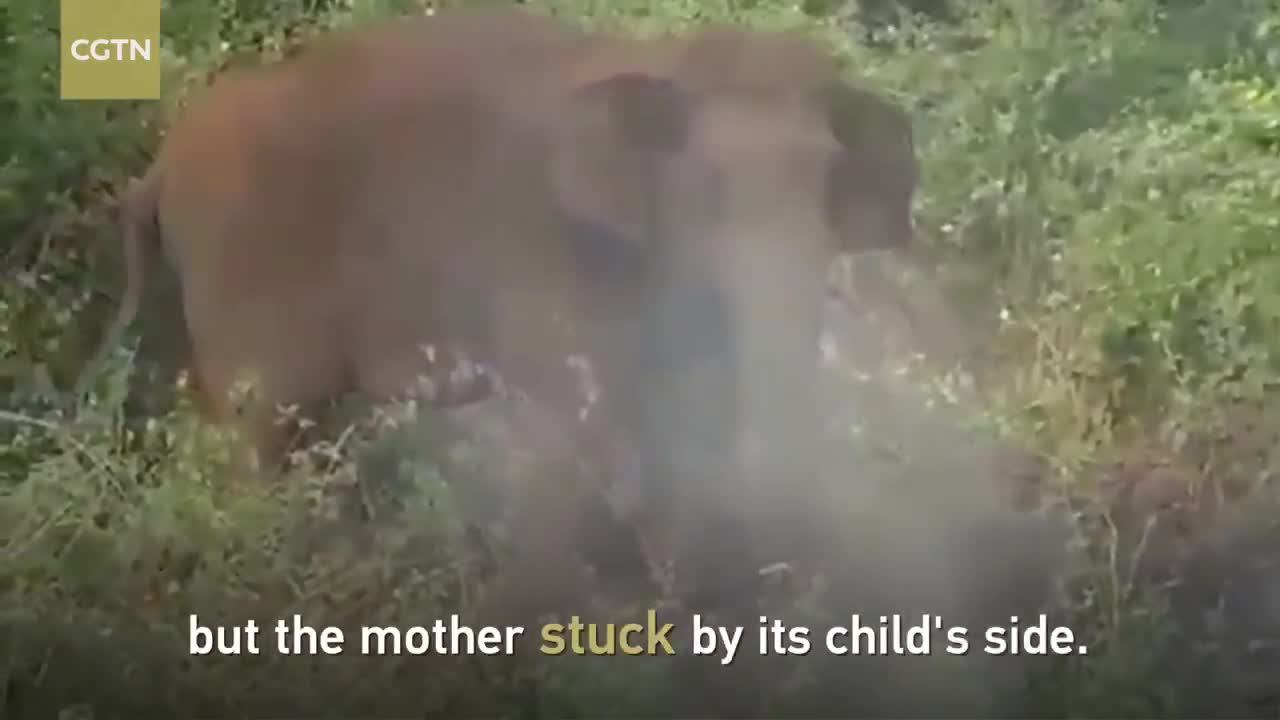 Theo CGTN, con voi mẹ dành hơn 24 tiếng đồng hồ cố gắng cứu sống voi con đã chết. Trong khi đó dân làng và các quan chức kiểm lâm cố gắng tách rời hai mẹ con bằng nhiều phương pháp như gây tiếng ồn, đốt pháo nổ. Voi mẹ vẫn “dính chặt” bên cạnh voi con trong một thời gian dài.