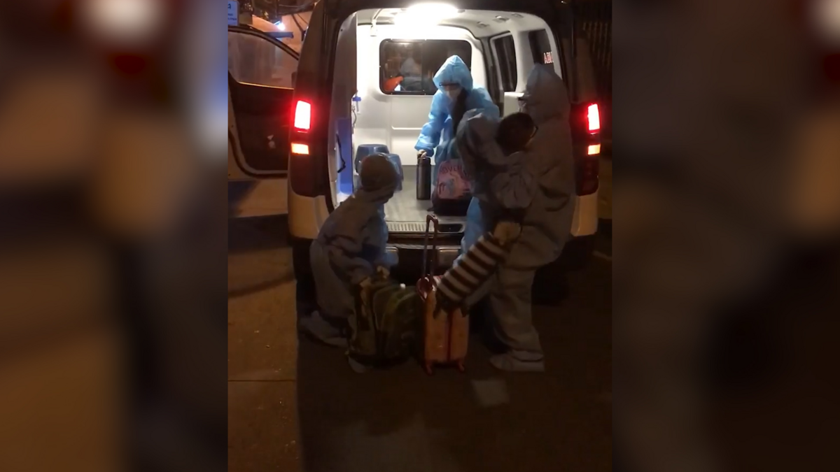 Hình ảnh 3 em nhỏ, trong hẻm 76 Tôn Thất Thuyết (quận 4, TP.HCM) mặc trang phục phòng hộ rộng thùng thình, theo gia đình lên xe đi cách ly khiến người xem xúc động.