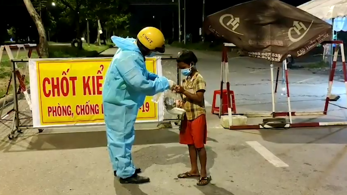 Video: Xúc động hình ảnh CSGT nhường hộp cơm cho cậu bé ăn xin ở TP.HCM
