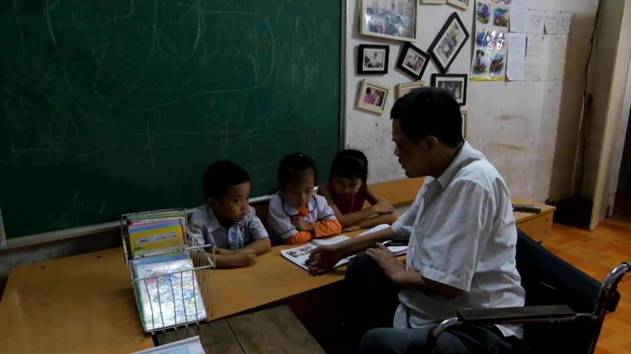 Hơn 7 năm qua, nhiều phụ huynh ở thôn Nhân Lý, xã Nam Phương Tiến thường gửi gắm con mình tới nhà anh Trường học chữ. Trong diện tích chưa đầy 15m², anh Trường trên chiếc xe lăn, vòng qua vòng lại chỉ dạy từng li từng tí cho những em nhỏ của xóm nghèo.