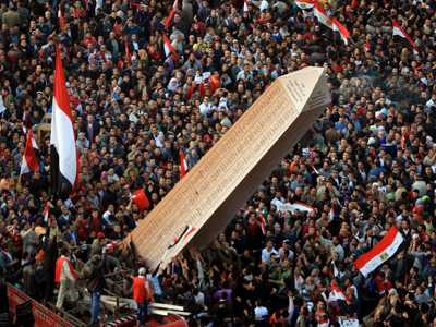Hàng trăm ngàn người biểu tình đã đổ xô về Quảng trường từ mọi ngả đường của Cairo, họ mang theo rất nhiều quốc kì và hô vang khẩu hiệu phản đối Mohamed Morsi và nhóm Anh em Hồi giáo.