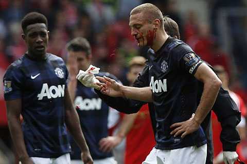 | Máu đã đổ trên mặt Vidic |