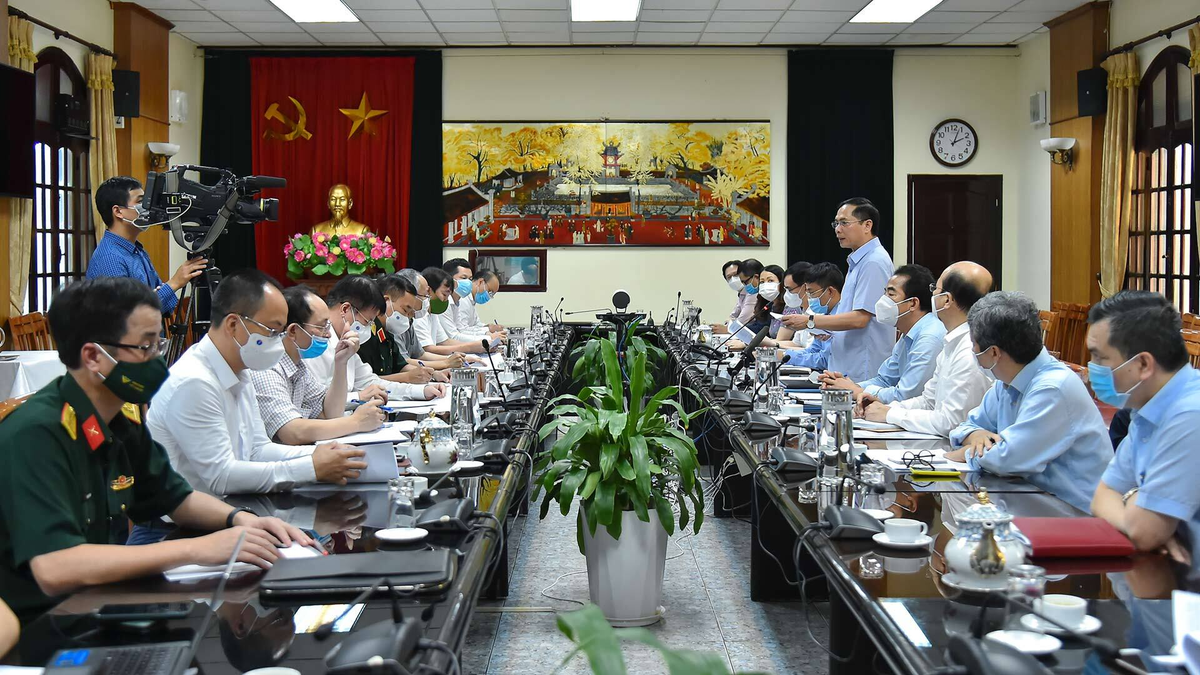 Bộ trưởng Bộ Ngoại giao Bùi Thanh Sơn, Tổ trưởng Tổ công tác của Chính phủ về ngoại giao vaccine chủ trì cuộc họp.