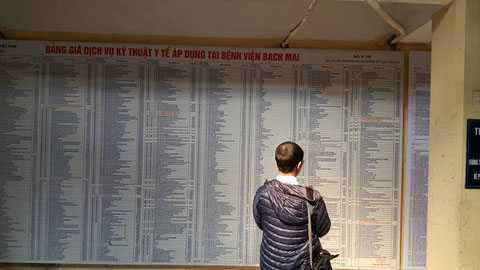 Ông Nguyễn Ngọc Hiền, Phó Giám đốc Bệnh viện Bạch Mai, cho biết tại Khoa Khám bệnh, bảng giá viện phí mới với giá chi tiết của gần 1.900 dịch vụ được niêm yết công khai cùng với bảng giá viện phí hiện hành (gần 900 dịch vụ) đang được thực hiện với bệnh nhân chưa có thẻ BHYT. Phần mềm quản lý giá viện phí đã được cập nhật tương thích với danh mục viện phí mới Bộ Y tế ban hành nên BV triển khai không có gì vướng mắc.